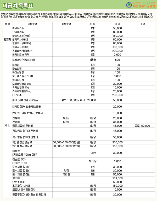 비급여 목록표 안내
