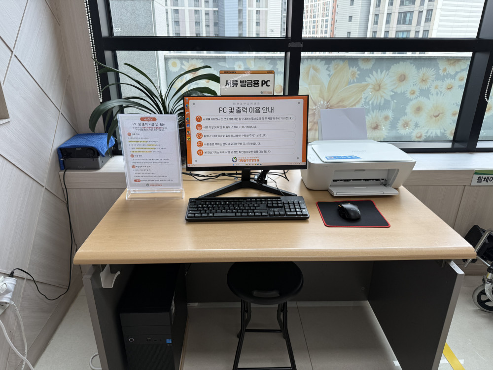 1층 로비에 고객전용 출력용 PC를 설치하였습니다.