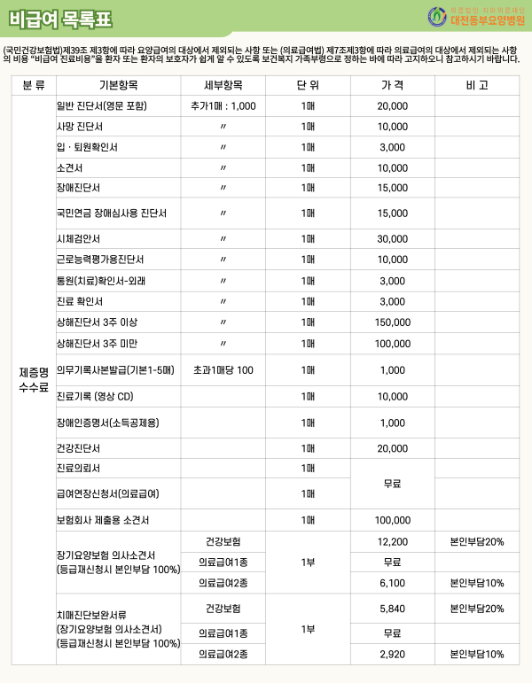 비급여 목록표 안내