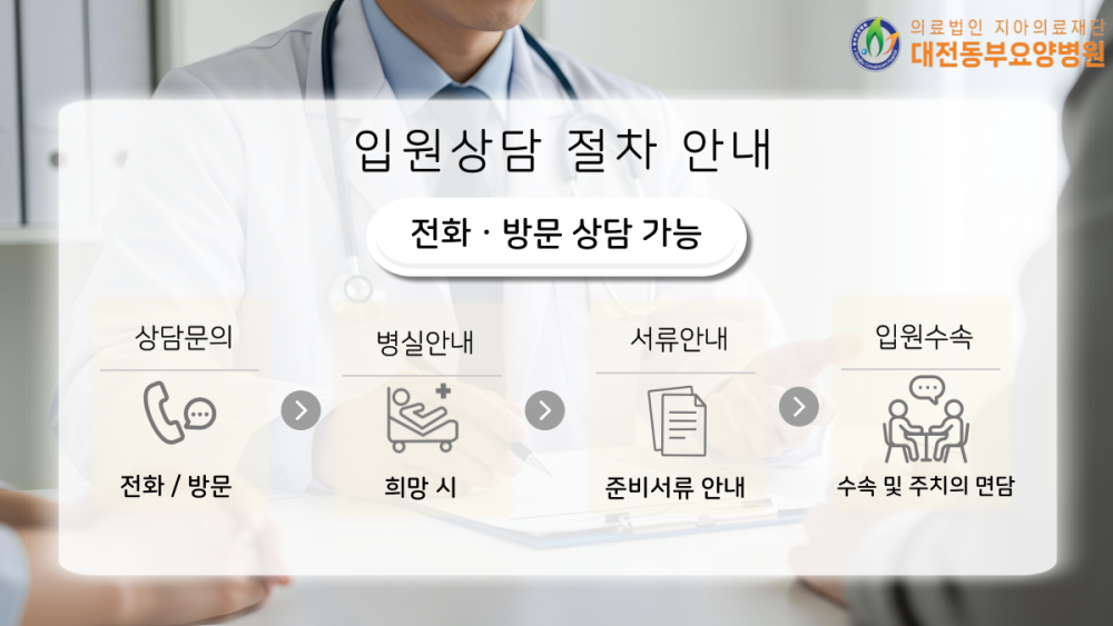 입원 상담은 전화 또는 방문 상담으로 진행됩니다.